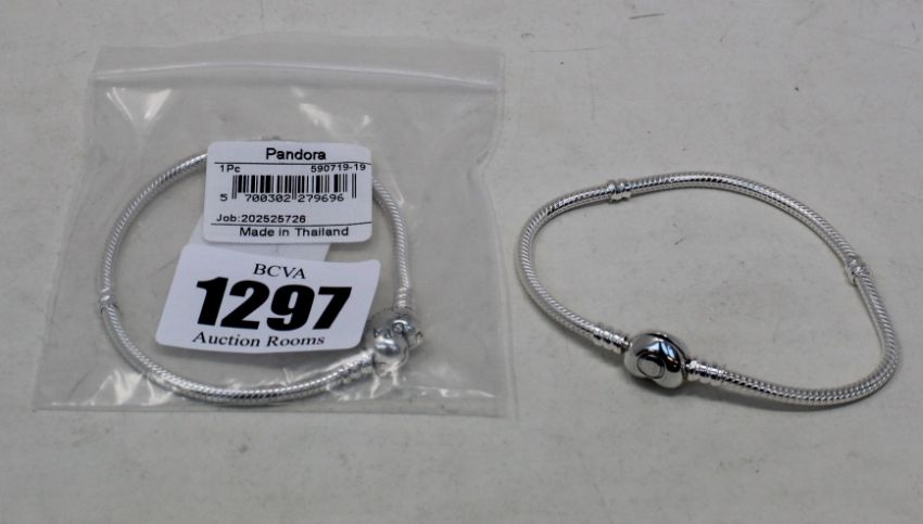 Two as new Pandora moments heart clasp snake chain bracelets (590719-19).
