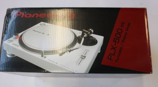 A boxed as new Pioneer DJ PLX-500-W Turntable in white.