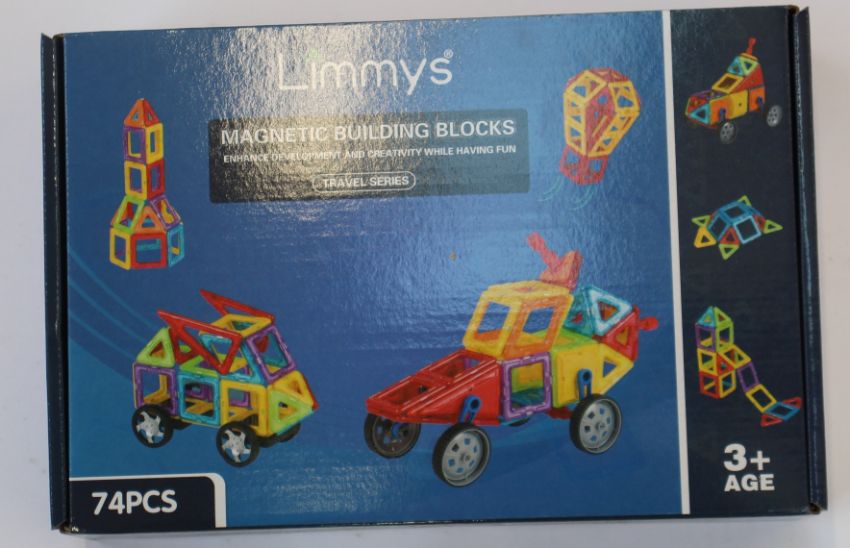 Twelve boxed as new Limmys magnetic building blocks 74pcs.