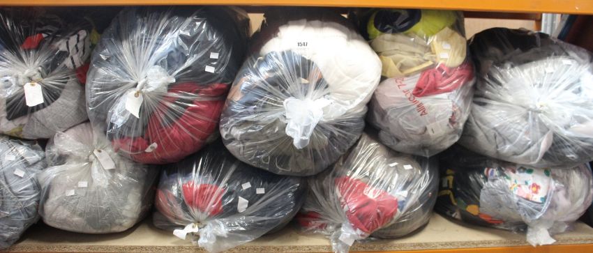Ten bags of pre-owned clothing and related items.