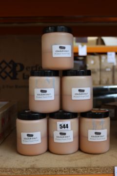Six tubs of Venezia Stucco colour 034/1 paint.