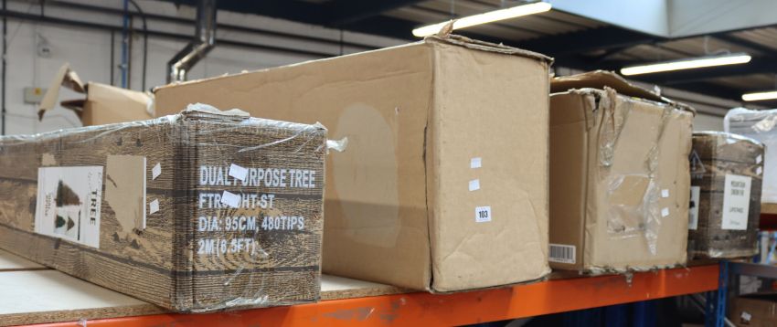 A Mountain Snow Fir Christmas Tree (Approximately 7'/2.1m) and a 2 metre Dual Purpose Tree, both from The Tree Company and boxed as new along with two similar.