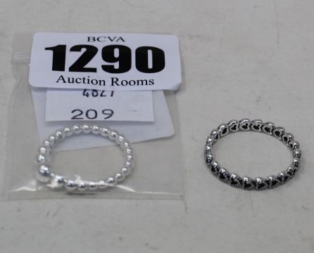 An as new Pandora string of beads ring (197536-54), an as new bands of hearts ring (190980-60) and an as new classic wishbone ring (197790CZ-58).