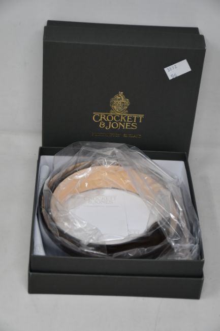 Two men's boxed as new Crocket & Jones Dark Brown Suede Belts (32).
