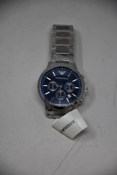 A men's as new Emporio Armani AR2448 stainless steel blue dial chronograph watch (No box).