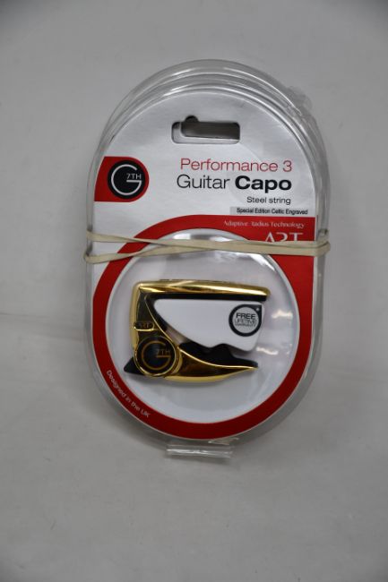 Three as new G7th Performance 3 Guitar Capos for steel strings (Special Edition Celtic Engraved).