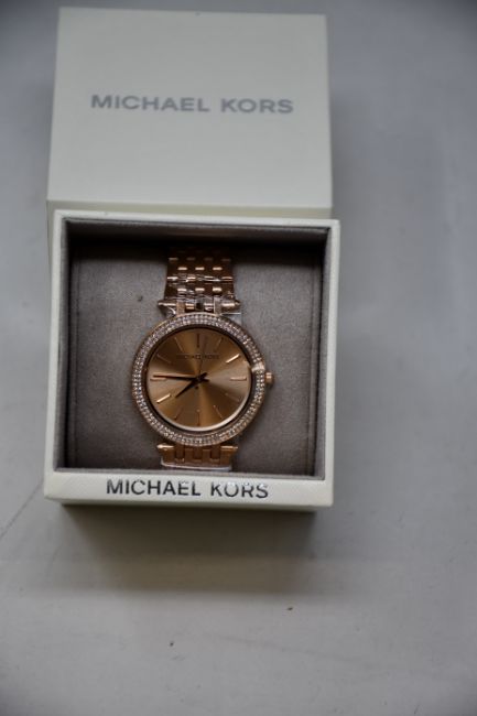 A ladies as new Michael Kors Darci watch in rose gold (MK3192).