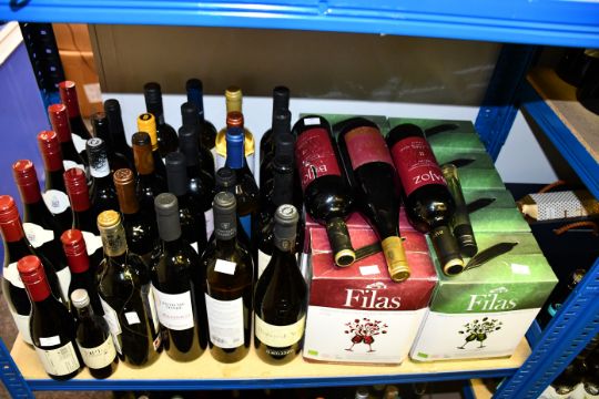 A quantity of assorted bottled wines and boxed red/white wines to include Famille Perrin Ventoux, Antiche Torri, Marcues de Riscal (Approximately 40 items) (Over 18s only).