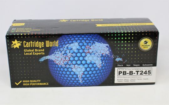 Eight boxed as new Cartridge World replacement ink cartridges for Brother TN221/TN225/TN245/TN255/TN265/TN285/TN295 Black (L02-PB-B-T245) (Boxes sealed).