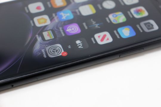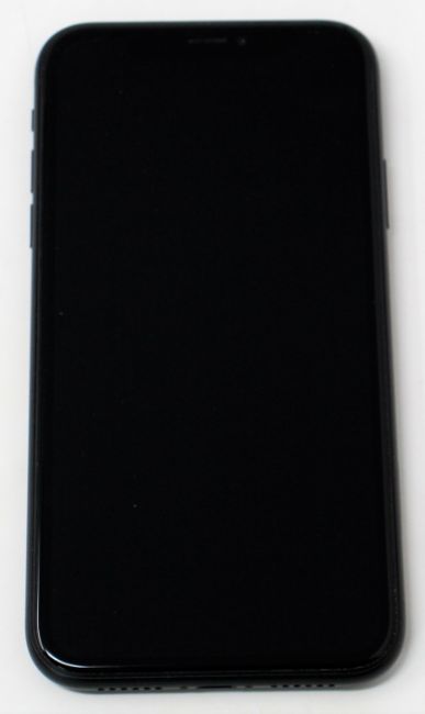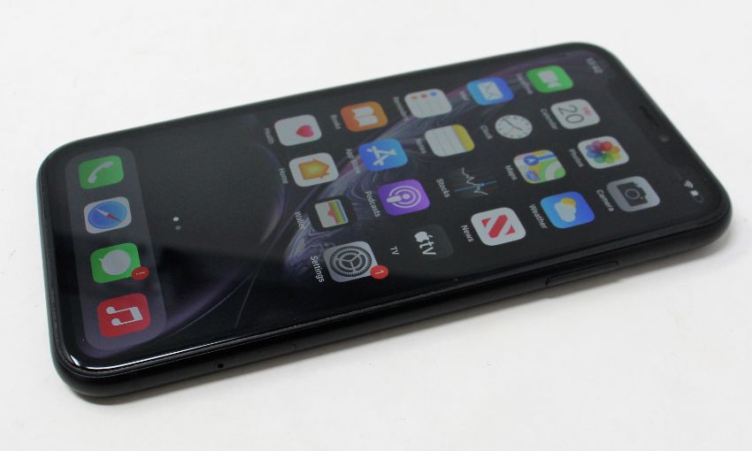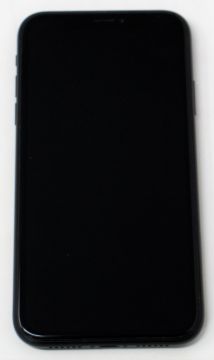 A pre-owned Apple iPhone XR (Global/A2105) 64GB in Black (Small chip in edge of screen glass) (iCloud Acvtivation Clear) (Checkmend report ID: CM17282119-A1E1A).