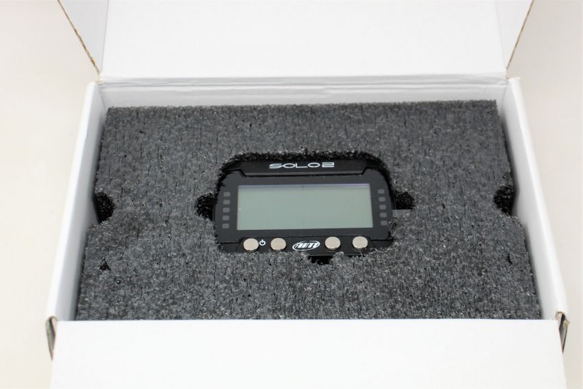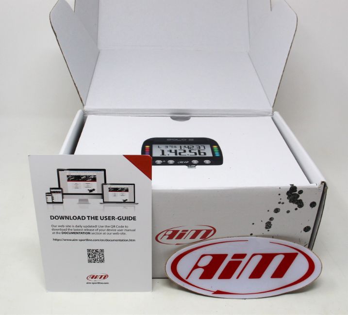 A boxed as new AIM Motorsport Solo 2 GPS Lap Timer (UK model).
