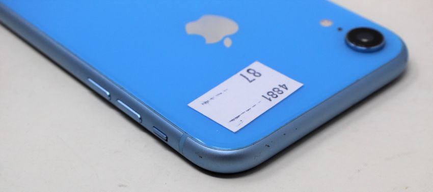 A pre-owned Apple iPhone XR (Global/A2105) 128GB in Blue (iCloud activation clear) (Checkmend report ID: CM17282119-A1E1A).