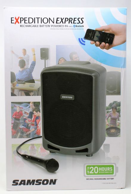 A boxed as new Samson XP360B Expedition Express Bluetooth Portable PA (Box opened, some damage to outer box).