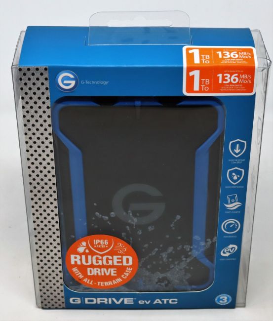 A boxed as new G-DRIVE ev ATC 1TB Rugged HDD with All Terrain Enclosure (Box sealed).