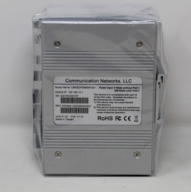 A boxed as new Comport CNGE2FE8MSPOE+ 10-Port PoE+ Environmentally Hardened Managed Ethernet Switch with Eight 10/100BASE-TX & Two 10/100/1000BASE-TX/FX Combo Ports (Box opened, inner packaging sealed).