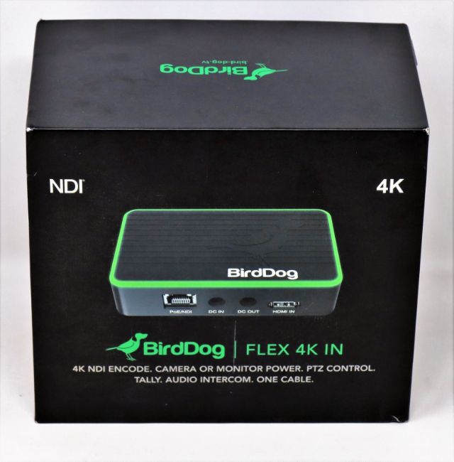 A boxed as new BirdDog Flex 4K BackPack Full NDI Encoder (Box opened, some damage to packaging).