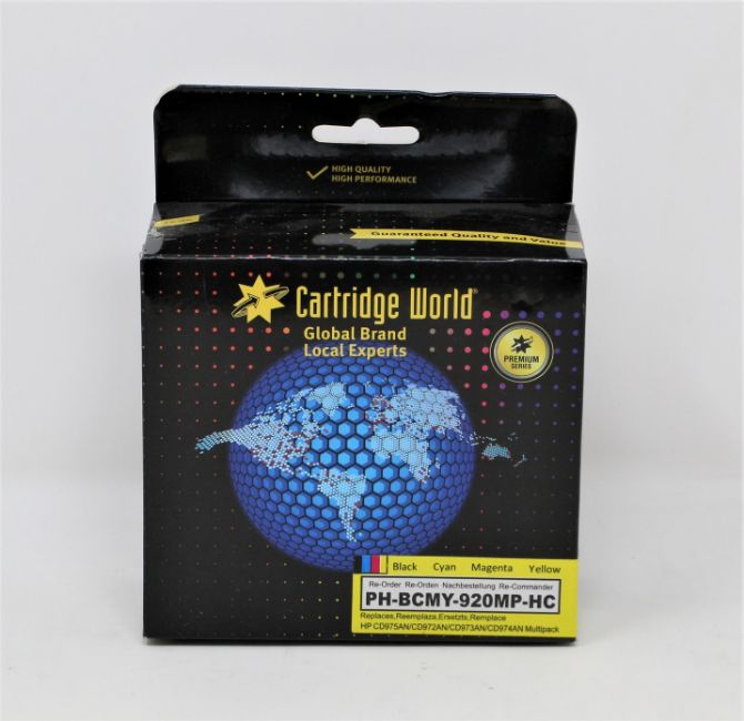 Eight boxed as new Cartridge World replacement ink cartridges for HP 920 XL B/C/M/Y Multipacks (PH-BCMY-920MP-HC) (Boxes sealed).
