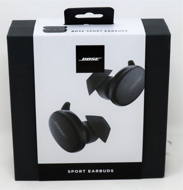 A boxed as new pair of Bose Sport Earbuds in Black (Box sealed).