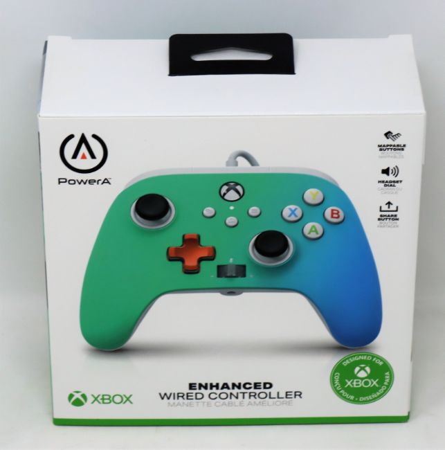 A boxed as new PowerA Enhanced Wired Controller for Xbox in Seafoam Fade.