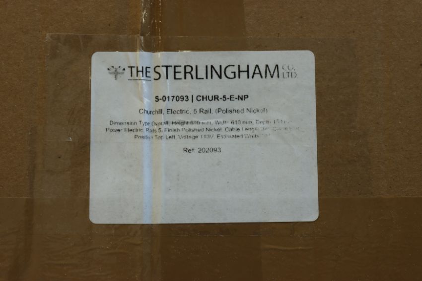 A boxed as new Churchill 5 Rail Electric Towel Warmer in polished nickel from The Sterlingham Co. Ltd (S-017093 / CHUR-5-E-NP).