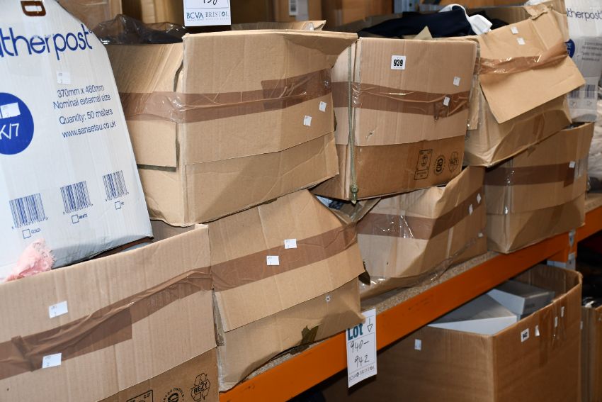 Ten boxes of clothing and related items.