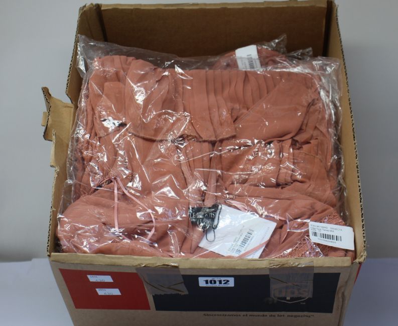 Eight as new Little Mistress Ada rose gold tiered hem midi dresses (1 x UK 8, 3 x UK10, 4 x UK 12).