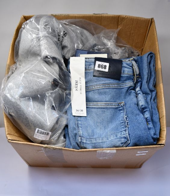 A women's as new Scotch & Soda tailored double breasted wool coat (XS - RRP £85), a pair of Scotch & Soda Skim jeans (W34/L30 - RRP £120), Scotch & Soda 1/4 zip top (M) and Scotch & Soda wool blend ribbed knitted turtleneck (M).