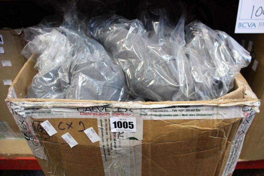 A quantity of as new Doc & Amelia By Cintas wedding clothing and accessories; nine suit jackets in grey, eighteen pairs of grey trousers, a navy dress, eight ties, a belt, a pocket square and two buttonholes.