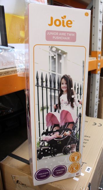 Four boxed as new HTI Toys Joie Junior Aire twin pushchairs.