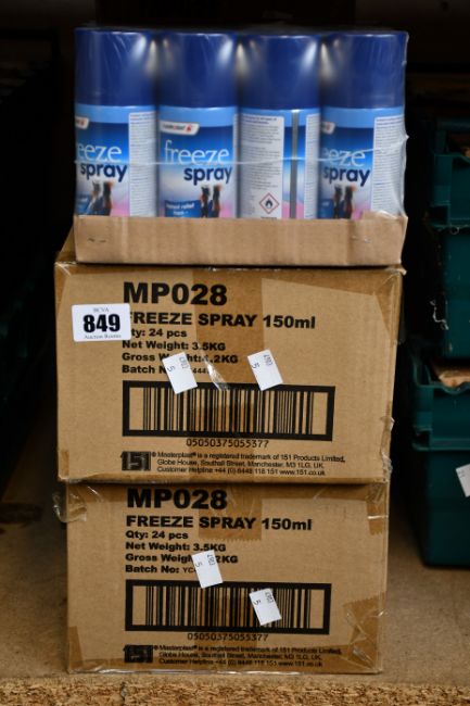 Five boxes of Masterplast freeze spray (24 cans per box).