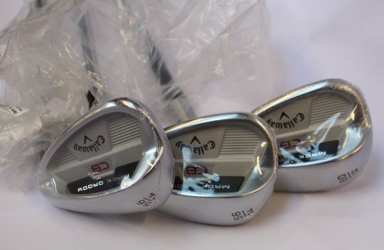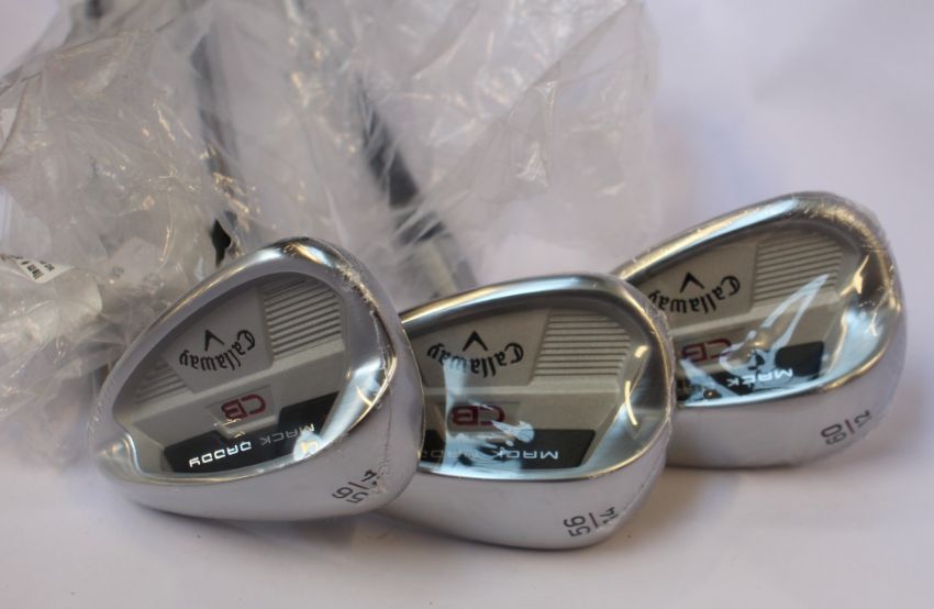 Three as new Callaway Mack Daddy CB wedges (2x 56 and 1x 60).