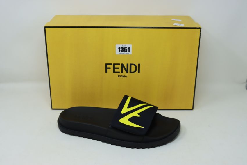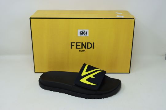 A pair of as new Fendi Diabolic Eyes slides (UK 7).