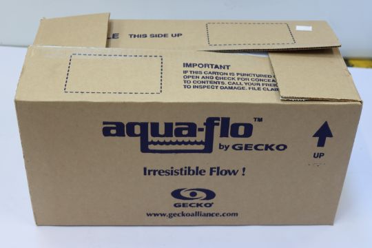 One box containing an as new Aqua-flo Circulation Pump, three as new Balboa Heaters 58107 and other related accessories (for hot tub or spa?).