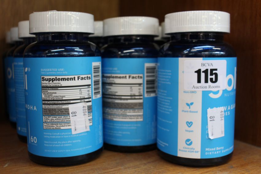 Thirteen bottles of Goli Nutrition Ashwagandha gummies mixed berry dietary supplement.