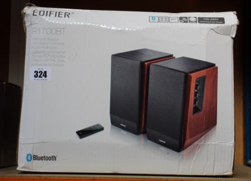 A pair of boxed Edifier R1700BT multimedia speakers.