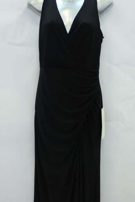 An as new Adrianna Papell Jersey Halter beaded back dress in black (Size 8).