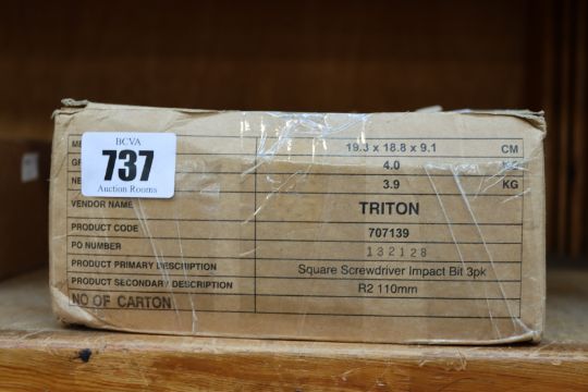 A large quantity of as new Triton square screwdriver impact bits 3 pack R2 110mm / 4" (Approximately 45 packs).