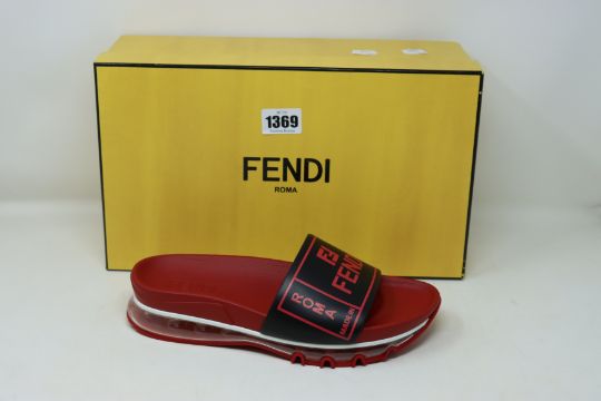 A pair of as new Fendi Signature Logo Fussbett slides (UK 8).