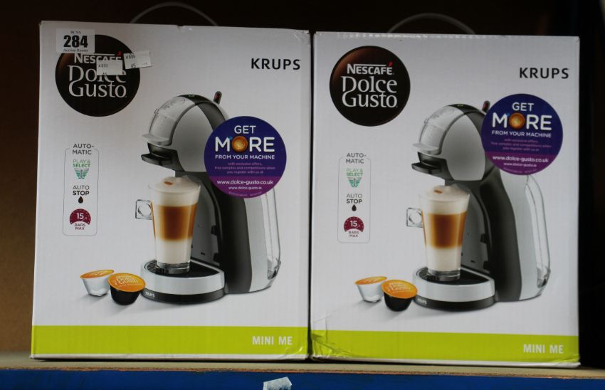 Four boxed as new Nescafe Dolce Gusto mini me coffee capsule machines.
