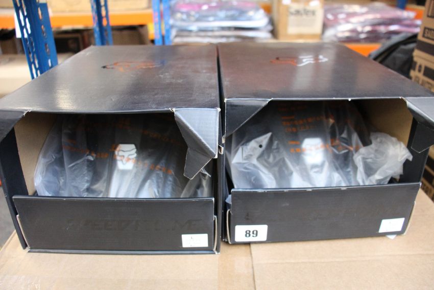 Two boxed as new Fox Speedframe Mips cycling helmets in black (Large).