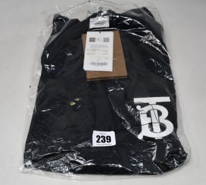 An as new Burberry Atherton long sleeved monogramed top in black (L - RRP £370 - Please note item has security tag attached).