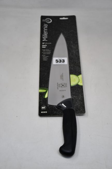 Six as new Mercer M22610 10" Millennia Chef's Knives. (over 18's only)