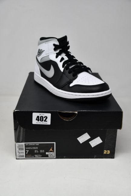 A pair of boxed as new Nike Jordan 1 Mid White Shadow Sneakers (UK 6).