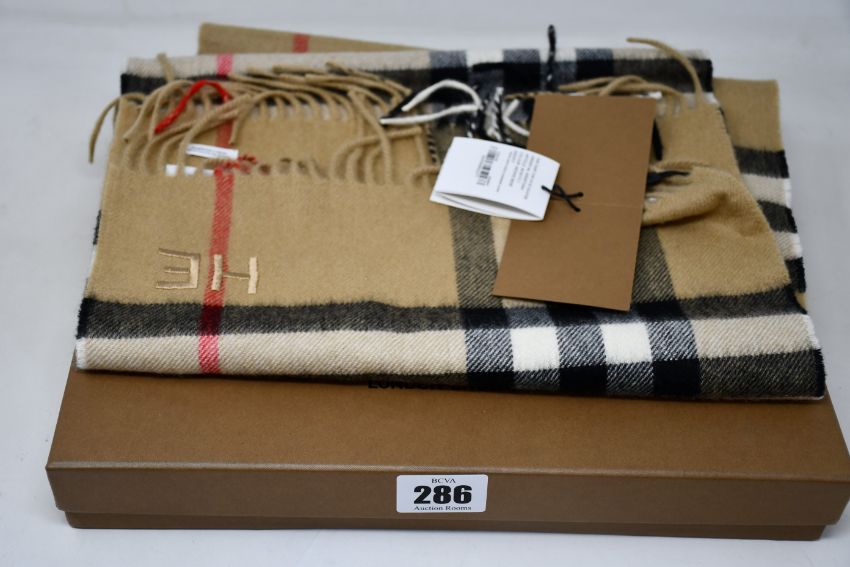 An as new Burberry Archive cashmere scarf (Initialled HE).