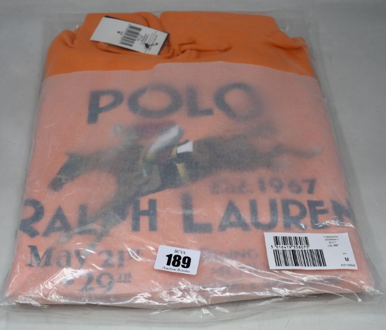 An as new Ralph Lauren hooded sweatshirt in orange (M).