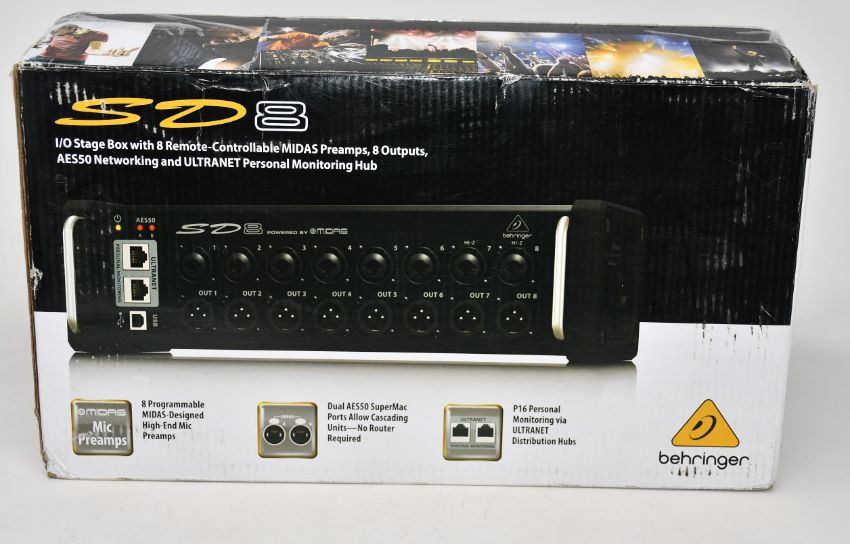 A boxed Behringer SD8 Digital Stage Box.