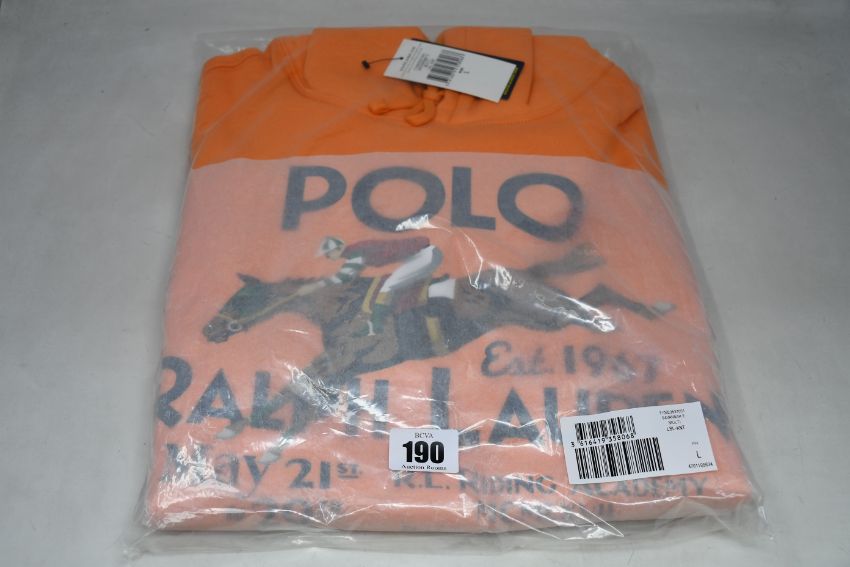 An as new Ralph Lauren hooded sweatshirt in orange (L).