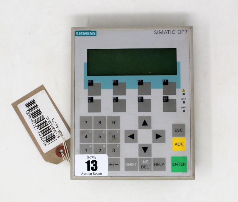 A pre-owned Siemens Simatic OP7 Operator Panel (P/N: 6AV3607-1JC20-0AX1) (Untested, sold as seen).