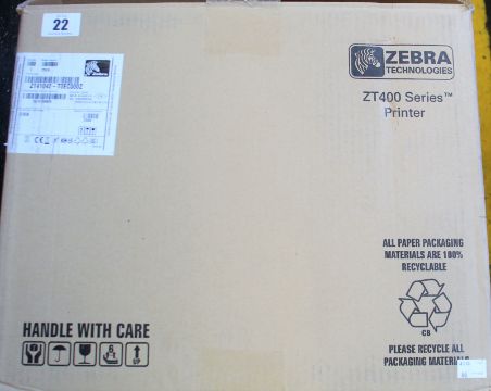 A boxed as new Zebra ZT410 203dpi industrial label printer with wireless connectivity (P/N: ZT41042-T0EC000Z) (Box opened).