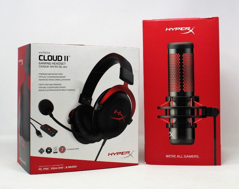 A box of fifteen HyperX retail returns including Cloud Stinger Gaming Headset,Cloud II Gaming Headsets and Quadcast Standalone Microphones (All items sold as seen).